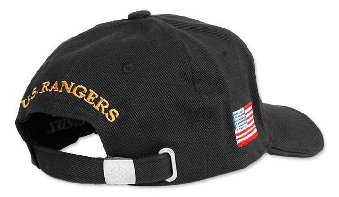 Auf der Vorderseite der Mütze ist ein Rangers-Logo aufgestickt, während die Seiten mit US-Flaggen versehen sind. Auf der Rückseite befinden sich eine Umfangsverstellung und ein gestickter Schriftzug, so dass sich die Mütze leicht an die meisten Kopfumfänge anpassen lässt und auch in der Bewegung nicht verrutscht. Mit dem Riemen lässt sie sich auch z. B. an einem Rucksack befestigen.