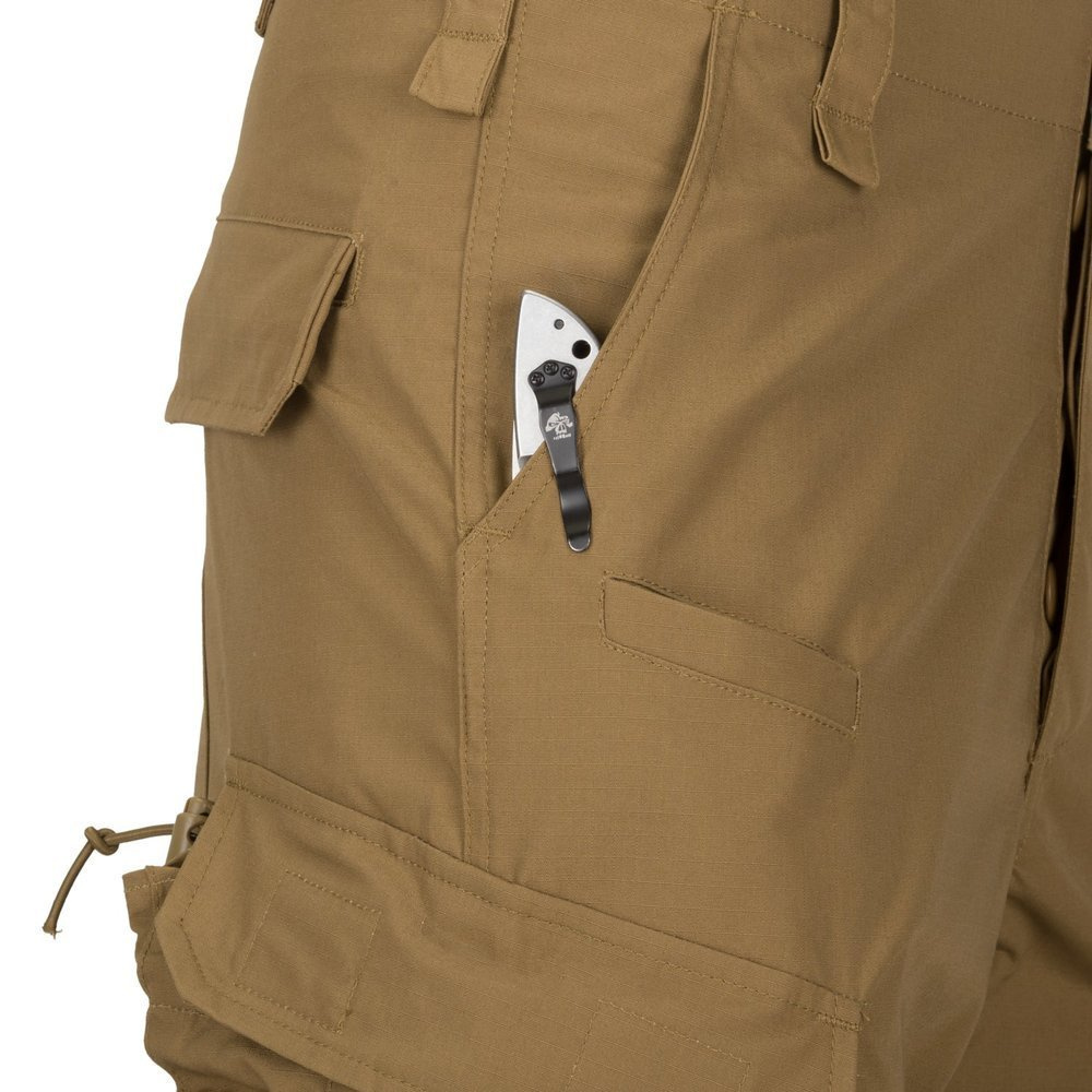 Die CPU® (Combat Patrol Uniform) Militärhose von Helikon-Tex ist von der polnischen Uniform 2010 inspiriert und besteht aus PolyCotton Ripstop Gewebe. Sie wurde mit Blick auf eine hohe Ergonomie entwickelt und ermöglicht volle Bewegungsfreiheit und effizientes Arbeiten in schwierigem Terrain. Der lockere Schnitt verbindet Komfort mit Funktionalität. Der verstellbare Bund und die Kordelzüge an den Beinen sorgen für eine präzise Passform.