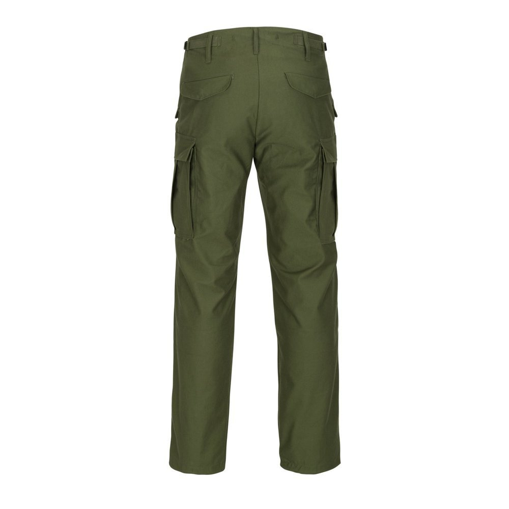 Hergestellt aus strapazierfähigem NYCO-Gewebe, das aus 50 % Baumwolle und 50 % Nylon besteht. Dadurch sind sie unglaublich stark und trocknen sehr schnell. Die Hose hat einen lockeren Schnitt, der die Bewegung nicht einschränkt, und weite Beine, was bei Militärhosen selten ist. YKK® mit Reißverschluss, Seitentaschen mit Bändern, schräge Taschen oben, Gesäßtaschen mit Druckknöpfen.