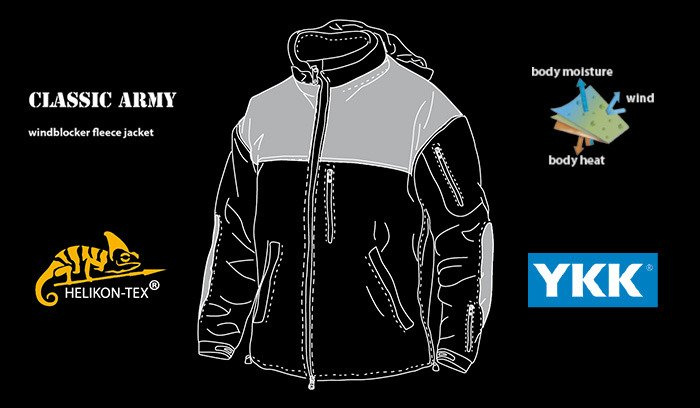 Bequemer und warmer Classic Army Fleece ausgestattet mit Helikon-Tex® Windblocker für erhöhten Schutz vor ungünstigen Wetterbedingungen. Es wurde für Soldaten und Polizisten entwickelt, die unter kalten Bedingungen arbeiten. Es eignet sich auch für den täglichen Gebrauch und bei körperlicher Aktivität als wärmende Schicht.