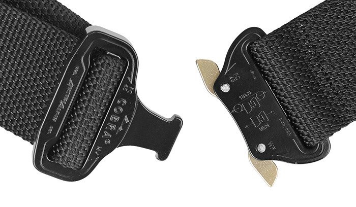 - Schnalle: AustriAlpin COBRA BLACK 45 mm, lackiert, Festigkeit 9kN, in einer Schlaufe von 18 kN