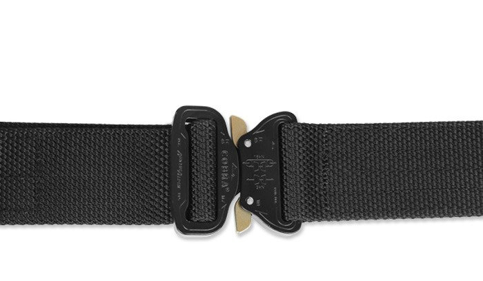 Zwei Lagen Band wurden so kombiniert, dass die Innenseite des Gürtels glatt ist und die Spitze der äußeren Lage vollständig unter der Klettverschlussplatte verborgen ist. Das verstellbare Gürtelende ist mit einem Klettverschluss versehen, so dass es ohne Gürtelschlaufen getragen werden kann.