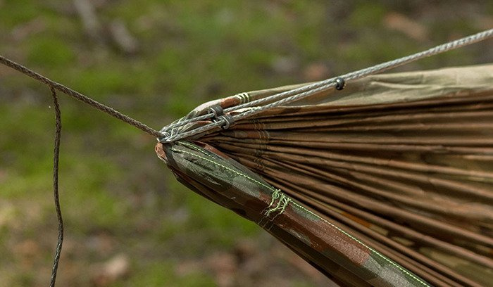 Chord SMUK der Firma Lesovik ist eine Linie, die die Enden der Hängematte verbindet, die als Firstlinie bezeichnet wird. Die Verwendung des Seils macht das Aufhängen schneller und einfacher und ermöglicht es Ihnen, die optimale Position zu wählen.