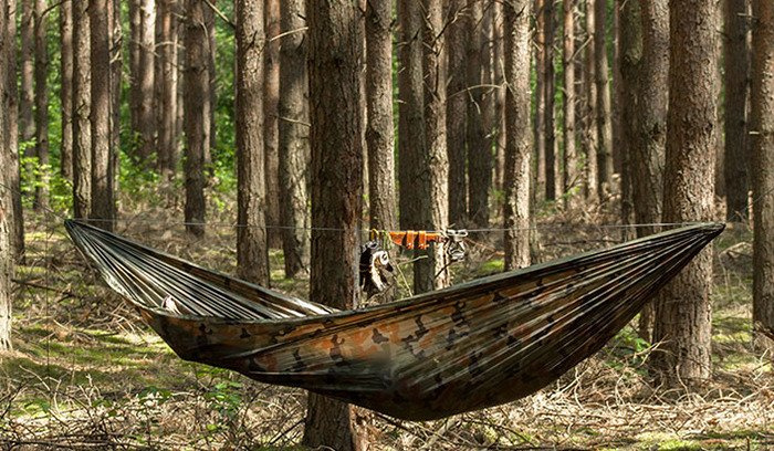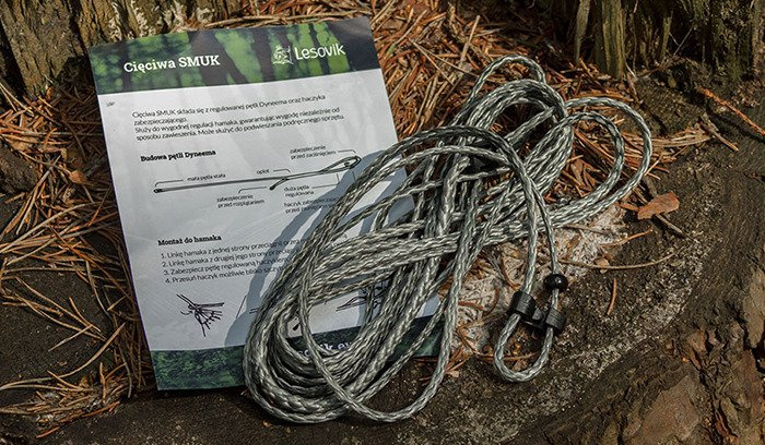 SMUK-Akkord ist an alle Modelle von Lesovik-Hängematten angepasst und seine Befestigung und entsprechende Anpassung dauert nur 3 Minuten. Die Schnur kann auch verwendet werden, um den Campingplatz besser zu organisieren und mit dem Karabiner können wir beispielsweise eine Taschenlampe oder Handschuhe befestigen.