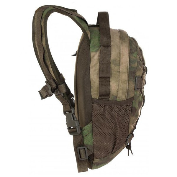 Die Seiten des Rucksacks und die Vorderseite sind mit einer Reihe von Befestigungsgurten versehen, die es ermöglichen, zusätzliche Elemente zu befestigen.