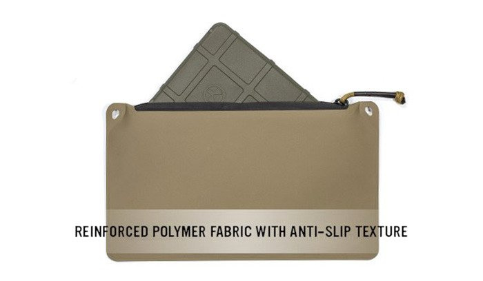 Die Abdeckung wird zur Aufbewahrung von elektronischen Geräten, Munition oder Notizen verwendet. Löcher in den Ecken machen es leicht, es an Ihrer Ausrüstung zu befestigen oder mit einem Karabiner zu befestigen.