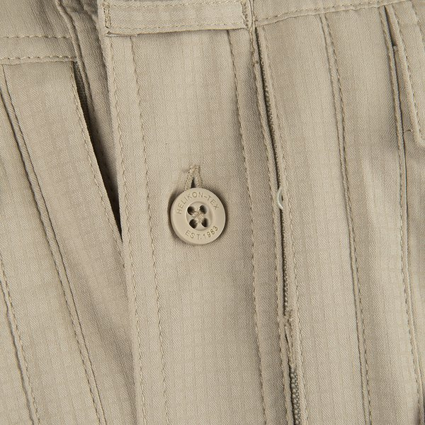 Das Helikon-Tex® Defender Mk2 Tropical Shirt® ist eine leichte Variante , die auf hohe Temperaturen ausgerichtet ist. Der Schnitt basiert auf einer durchgehenden Knopfleiste und einem Kragen, der die Positionierung im Nacken stabilisiert. Im Brustbereich befinden sich vier Taschen mit unterschiedlichem Zugang: zwei aufgesetzte Taschen mit Klettverschluss und zwei flache Napoleontaschen mit Reißverschlüssen, die in vertikalen Schnitten versteckt sind.