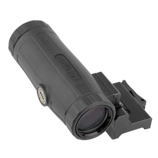 Eine Lupe für den HM3X Flip-Up Typ Kollimator von Holosun. Wenn sie in Visierhöhe aufgesteckt wird, bietet sie eine konstante optische Vergrößerung von 3x. Damit kann man den Kollimator in ein Fernrohr mit geringer Vergrößerung verwandeln. Was ein solches Set jedoch von einem Spektiv unterscheidet, ist, dass es bei Bedarf ausreicht, die Lupe wegzuschieben und das eigentliche Visier wieder zur Verfügung steht.