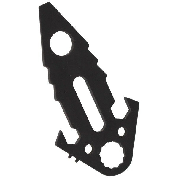 Griff - Full-Size, wie bei Kampfmessern. Eloxierte Aluminium-Griffschalen für einen sicheren Griff sowohl mit nassen als auch mit behandschuhten Händen. Voll-Edelstahl-Liner. Im hinteren Teil des Griffs ein Loch (Lanyard-Loch) mit einer gespannten elastischen Schnur, an der ein Stahlstift befestigt ist. Zusätzliche gekerbte Rückeneinkerbung auf der Rückseite des Griffs für Benutzer, die einen umgekehrten Griff schätzen. Der Stahlkopf kann als Glasbrecher und mehr dienen.