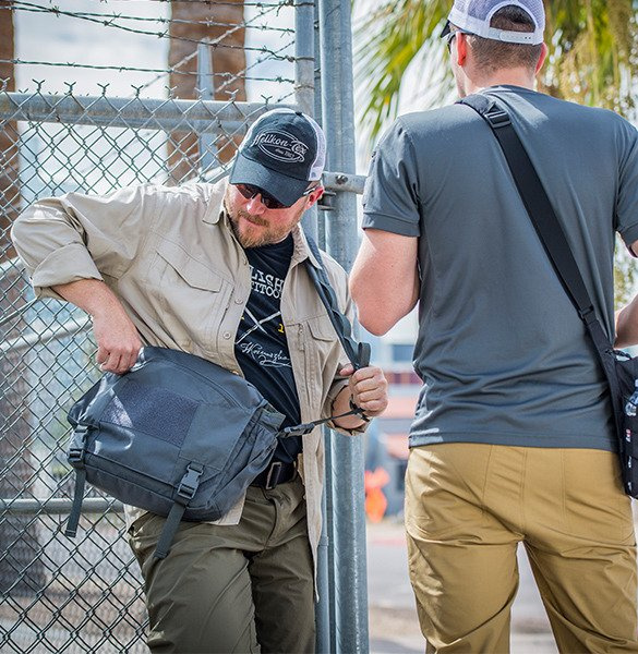 Die Verwendung von Materialien höchster Qualität wie strapazierfähigem Nylon und zuverlässigen YKK® Reißverschlüssen führt zu einer hohen Widerstandsfähigkeit und Langlebigkeit des Produkts. Das von Helikon entwickelte Montagesystem des "Versatile Insert System" basiert auf einem innen eingenähten Samt und wurde verwendet, um die Möglichkeit der Personalisierung der Tasche zu bieten.