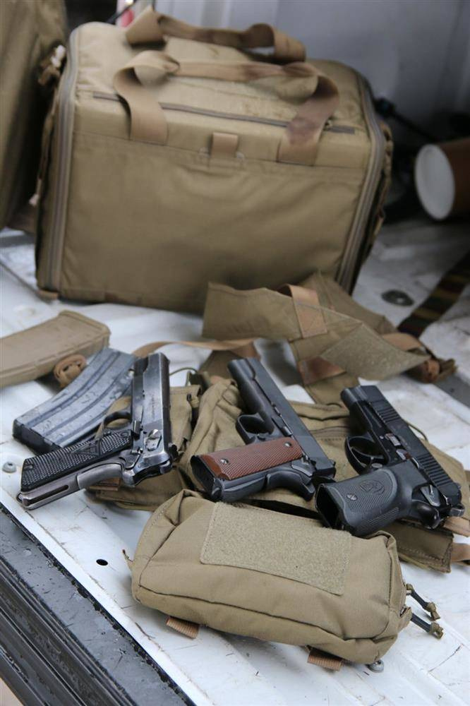 - AK / AR-Magazine in Taschen mit elastischen Griffen gesichert.