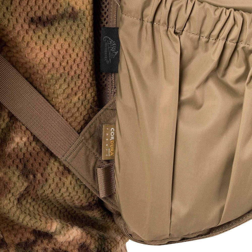 Das Hauptfach des 25-Liter-Rucksacks wurde mit MOLLE / PALS-Gurten und vier Netztaschen ausgekleidet: zwei mit Reißverschluss und zwei, die mit dem Shockcord-Puller geschlossen werden. Das Ganze ist mit einer Klappe bedeckt, die nach dem Falten mit der Rückseite der Tasche verbunden werden kann, wodurch sie sich in einen großen Organizer verwandelt. Dank der angebrachten Gurte ist es möglich, das Ganze einfach zu befestigen, zum Beispiel an einem Autositz.