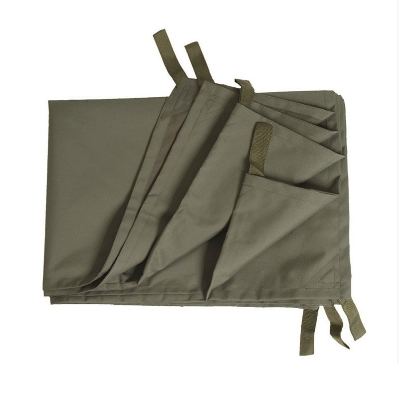 • Touristische Plane, die zum Aufbau eines Vordachs oder zur Isolierung des Bettzeugs vom Boden verwendet wird. Strapazierfähiges Polyester mit einem wasserdichten Bezug. Schlaufen an den Ecken zum einfachen Aufhängen. In der Farbe Militärgrün-Oliv.