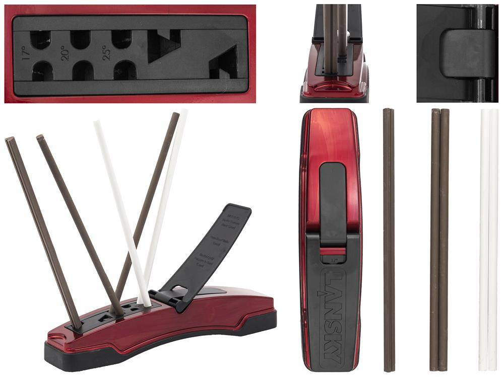 Die Basis besteht aus Polymer, in die der Anwender die ausgewählten Schärfstäbe im entsprechenden Winkel einsetzt. Wenn die Stäbe der gleichen Abstufung platziert werden, entsteht ein V-artiges Schärfsystem mit einem festen Schärfwinkel. Diese stabile Konstruktion bietet eine ausreichende Kontrolle über den Schärfvorgang, so dass das Messer schnell und professionell geschärft werden kann.