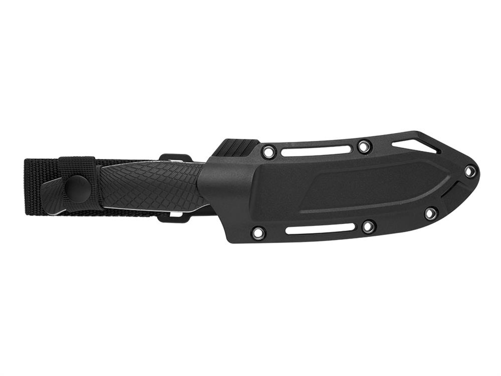 Die Griffschalen sind aus FRN-Kunststoff gefertigt - einer Kombination aus Nylon und Glasfaser. Die konturierte Form liegt gut in der Hand und ermöglicht bequemes Arbeiten auch mit taktischen Handschuhen. Zum sicheren Tragen des Messers gibt es eine im Spritzgussverfahren hergestellte Polymerscheide, die das Tragen am Gürtel oder am Oberschenkel ermöglicht.