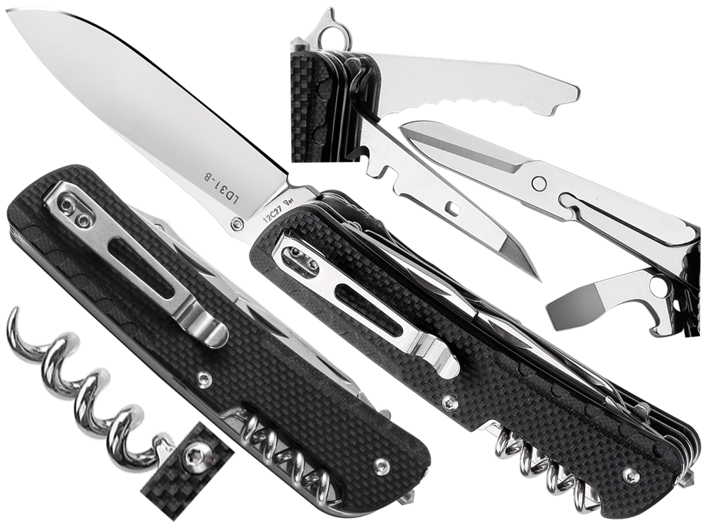 Der praktische Liner Lock garantiert die Sicherheit des Benutzers. Das Öffnen mit einer Bewegung des Daumenbolzens ist schnell und intuitiv. Die G10-Laminatbeschichtung sorgt für einen festen Griff, und 16 Werkzeuge in einem kompakten Paket machen es vielseitig und perfekt für den täglichen Gebrauch. Das Gewicht von 181 g und die kompakte Größe machen es zu einem praktischen Werkzeug für jedermann. Man kann es problemlos in einer Tasche oder Hosentasche mitnehmen.