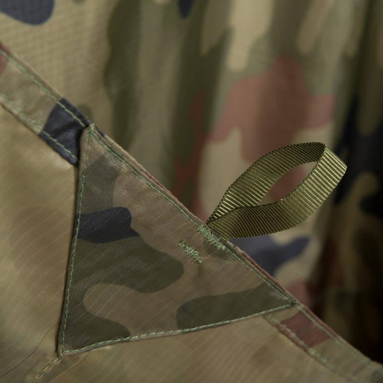Supertarp Small von Helikon ist eine kompakte Universalplane, die für den Aufbau von Unterkünften im Gelände konzipiert ist. Sie ist aus leichtem Polyester mit Ripstop-Gewebe gefertigt, das in Kombination mit verstärkten Befestigungspunkten - bis zu neunzehn! - und verklebten Nähten auch eine hohe Haltbarkeit bietet.