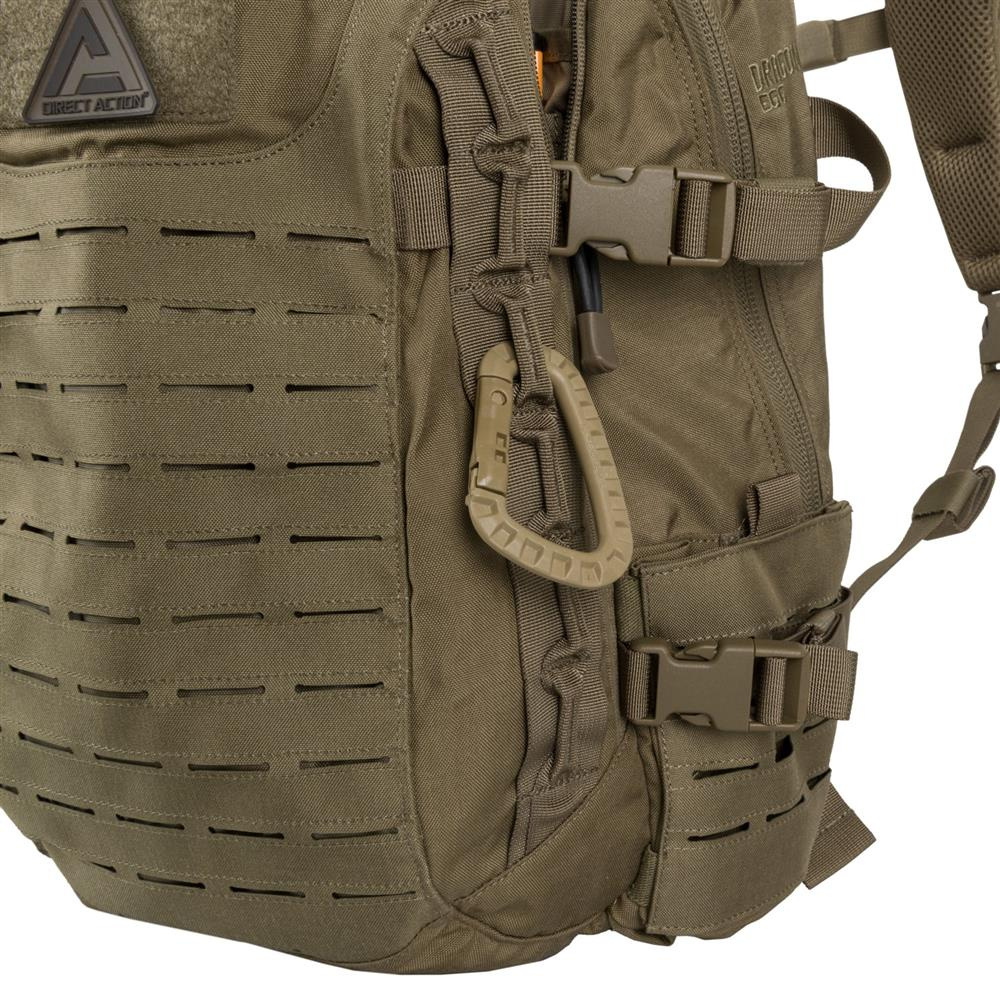 Der Hersteller hat den Rucksack mit einem gängigen Zubehörbefestigungssystem im MOLLE-Standard ausgestattet. Außerdem besteht sein Griff aus Paracord, das man bei Bedarf einfach abnehmen kann, um 5,5 m Funktionsschnur zu erhalten. Darüber hinaus ist der Direct Action Rucksack mit einem Hüftgurt und einem Brustgurt ausgestattet, die für zusätzlichen Komfort bei stundenlangem Einsatz sorgen.