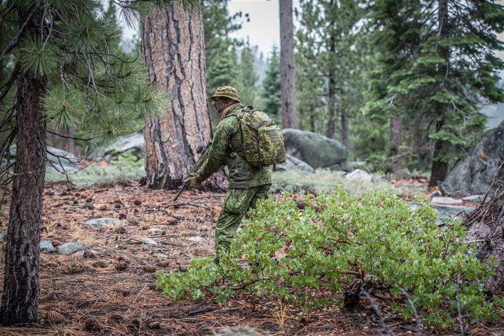 Das Tragesystem basiert auf einem bequemen, ergonomischen Gurt mit Hüft- und Brustgurt und einer internen Stütze am Rücken. Es verwendet ein fortschrittliches Combat Vent System® - ein innovatives Belüftungssystem, das für erhöhten Benutzerkomfort sorgt. Er bestand aus Profilschaumstoff mit vielen Luftkanälen, die mit luftigem Mesh bedeckt waren. CVS® hält den Rucksack auf Distanz zum Rücken, was die Luftzirkulation erhöht, Hitzestau und Schweißbildung verhindert, während der Schaum für Tragekomfort sorgt und den Rucksack fest auf dem Rücken hält.