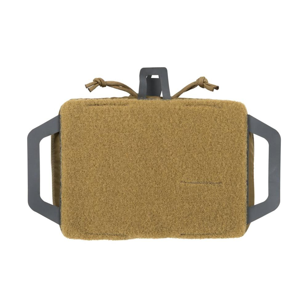 Das Design der Med Pouch Horizontal besteht aus zwei Teilen, einem an der Rüstung befestigten Griff und einem Einsatz - einer medizinischen Tasche, die mit einem Zwei-Wege-Reißverschluss geschlossen wird, mit Griffen für seine sofortige Öffnung. Das Ganze zeichnet sich durch einen einfachen Zugang zum Einsatz unabhängig von der verwendeten Hand aus, der Auswurf erfolgt dank der großformatigen, bequemen Laminatgriffe. Das Innere der Tasche ist so konzipiert, um viele Artikel in der Erste-Hilfe-Kit zu tragen wert. Ihre Installation wird mit Hilfe von elastischen Bändern durchgeführt.