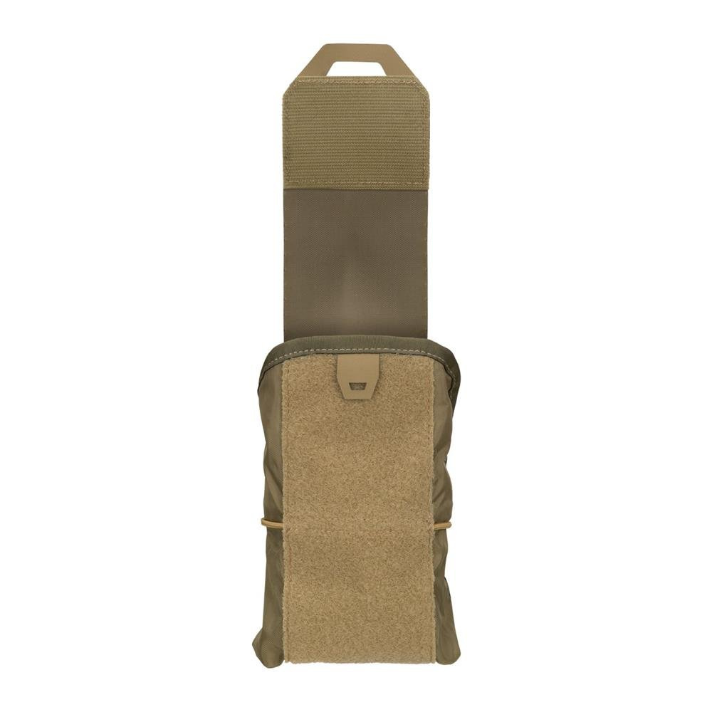 Das Design des Med Pouch Horizontal besteht aus zwei Teilen, einem an der Ausrüstung befestigten Griff und einem Einsatz - einer medizinischen Tasche mit faltbaren Wänden und mit einem Griff für seine sofortige Extraktion. Das Ganze zeichnet sich durch einen leichten Zugriff auf den Einsatz aus, unabhängig von der verwendeten Hand, die Verlängerung erfolgt dank des Griffs aus Hypalon™-Material, der sich unter der Klettverschlusslasche befindet . Das Innere der Tasche wurde so gestaltet, dass es viele Gegenstände aufnehmen kann, die es wert sind, in einem Erste-Hilfe-Kasten mitgeführt zu werden. Die Installation der Ausrüstung erfolgt mit Gummibändern.