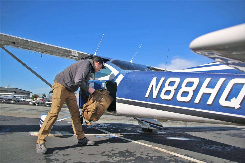 - er kann in eine der Taschen komprimiert werden