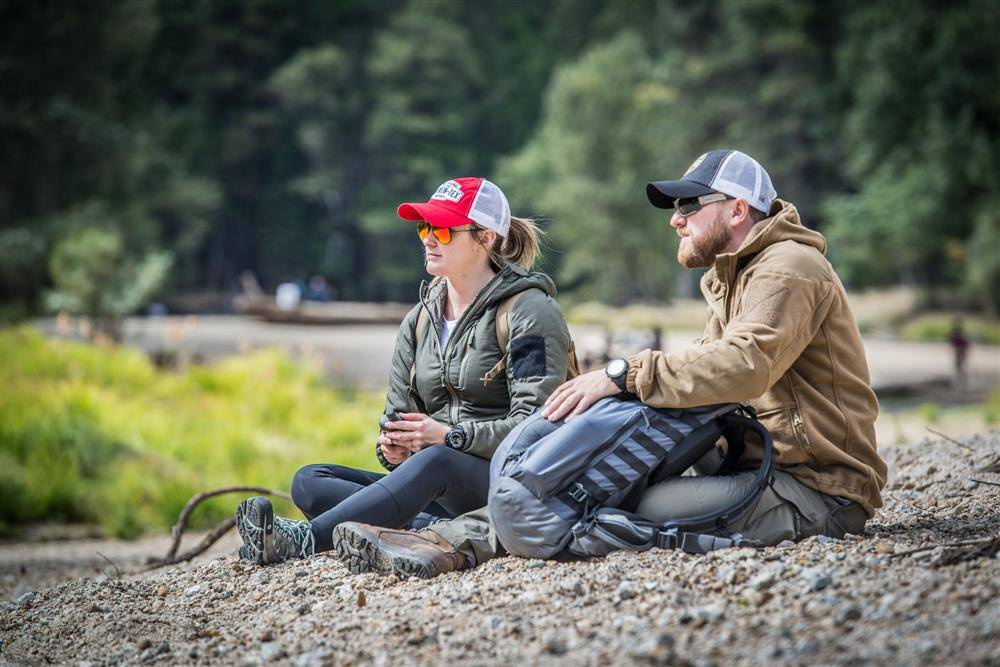 Die Konstruktion ist durchdacht, wobei der Schwerpunkt auf der Strapazierfähigkeit liegt - Verstärkungen an den Schultern und Ellbogen mit Nylongewebe erhöhen die Abriebfestigkeit und verbessern die Funktionalität beim Tragen eines Rucksacks. Netzeinsätze unter den Achseln sorgen für eine bessere Belüftung. Der Kapuzenpullover kann mit Klettverschlüssen an den Ärmeln individuell angepasst werden.
