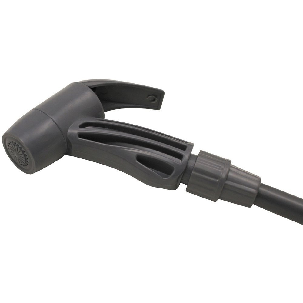 Die Benutzung der Dusche ist denkbar einfach: Der geschlossene Deckel ermöglicht ein leichtes Befüllen, der Griff mit Verstärkung aus Kunststoffschlauch und Seil erlaubt das Aufhängen der Dusche an einem Ast oder Bügel, und die Duschspitze erlaubt ein bequemes Duschen.