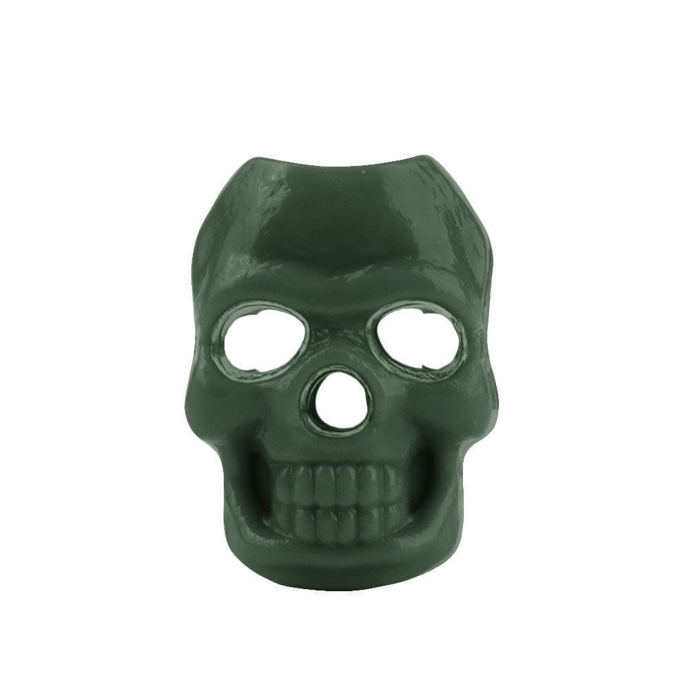 10er-Set Totenkopf-Stoppuhren von Mil-Tec aus robustem Polyformaldehyd (POM). Das Produkt hat die Form eines menschlichen Schädels, was ihm ein unverwechselbares militärisches Aussehen verleiht und sich als nützlich für die Personalisierung taktischer Ausrüstung erweist.