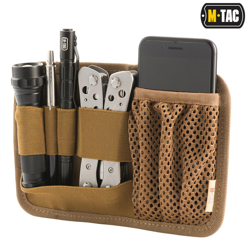Hilft Ihnen, den Platz in Ihrer Tasche so zu organisieren, dass alle notwendigen Dinge griffbereit sind. Es hat flexible Halterungen für Stifte, Taschenlampen, Multitool, Messer, Telefon oder andere nützliche Dinge. Das Modul ist außerdem mit einem Schlüsselhalter ausgestattet.