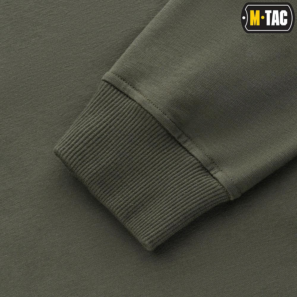 Universal 4 Seasons Pullover hergestellt von M-Tac. Geeignet für den ganzjährigen Gebrauch, für den täglichen Gebrauch oder bei körperlicher Betätigung. Es wurde aus einer Kombination von Baumwolle und Elaston hergestellt, wodurch es ein angenehm anzufassendes Material hat, das sich der Figur anpasst. Gerippte Bündchen und Nackenbereich sind dehnungs- und verschleißfest.