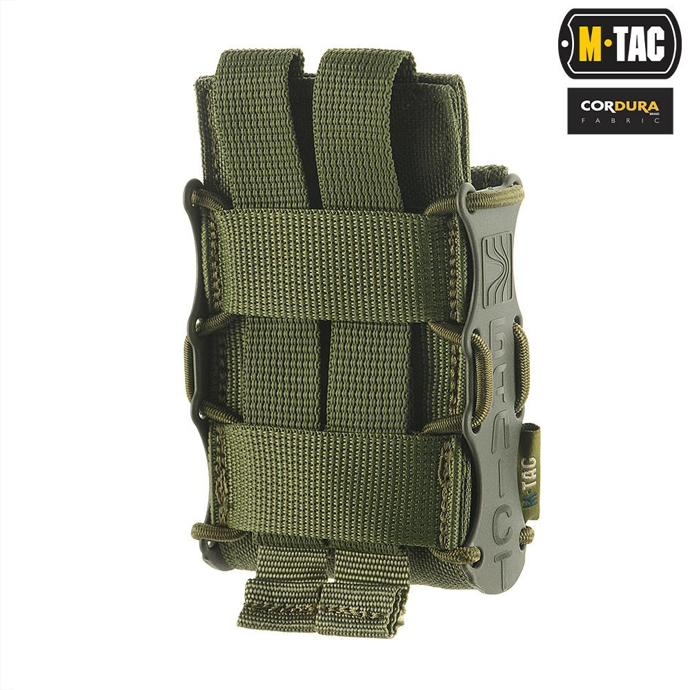Universaltasche für ein Magazin für AK- und AR-Karabiner, hergestellt von M-Tac. Das auf einer flexiblen Kordel basierende Design passt sich der Form des Magazins an und hält es sicher im Inneren und erleichtert das Einlegen und Entnehmen. Es wird an den Befestigungsgurten der Westen im MOLLE / PALS-System montiert. Externe Befestigungsgurte ermöglichen das Anbringen zusätzlicher Ausrüstung.
