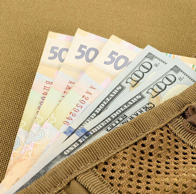 Praktische Geldbörse von M-Tac. Hilft Ihnen, gespeichertes Bargeld, Karten und Visitenkarten zu organisieren.