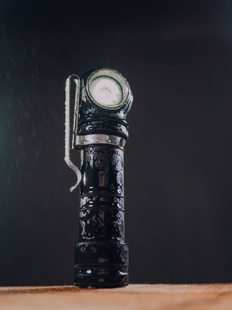 Flashlight Wizard C2 PRO MAX der kanadischen Firma Armytek, der alle Features einer hochwertigen EDC (Every Day Carry) Taschenlampe vereint. Durch das Gehäuse aus Luftfahrt-Aluminium mit schwarzer Eloxierung Typ III ist die leichte Struktur langlebig und resistent gegen Staub, Wasser und Stürze aus bis zu 10 Metern Höhe.