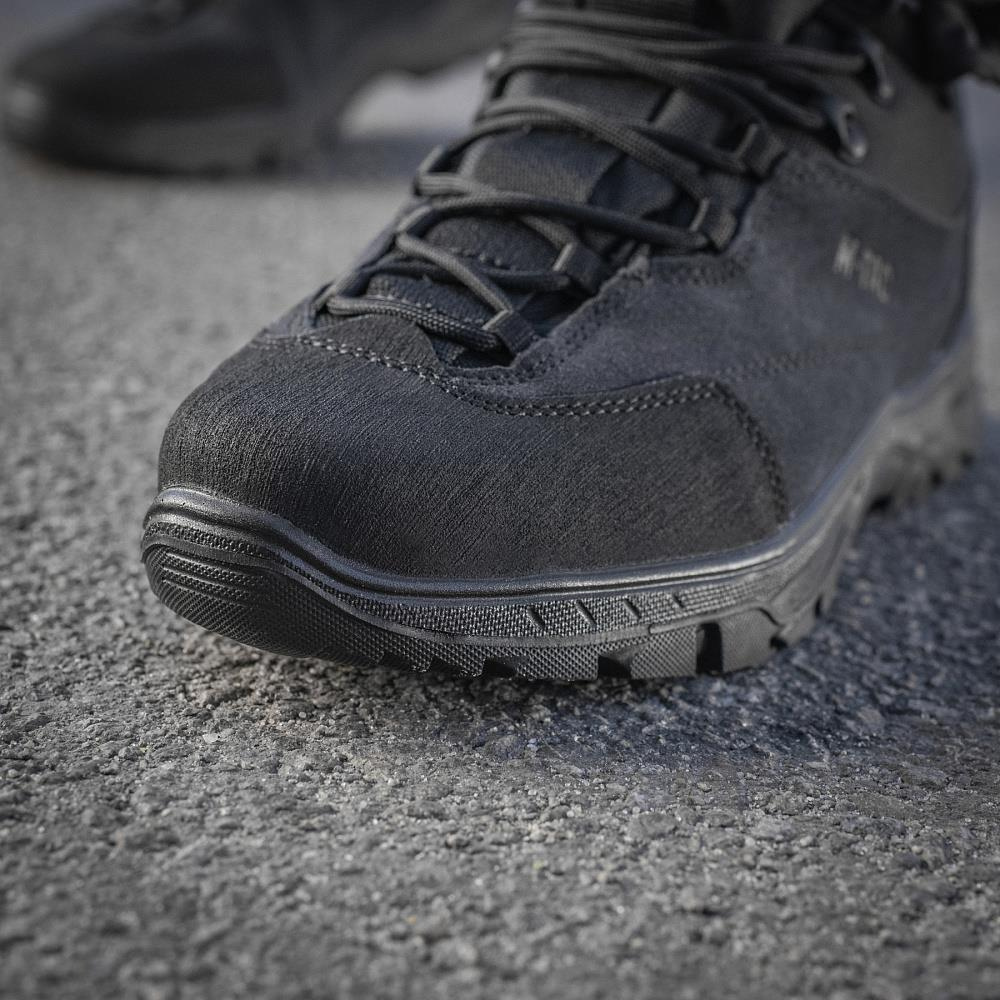 Taktische Stiefel für den täglichen Gebrauch durch Zivilisten, Polizisten und Sicherheitspersonal. Hergestellt von der ukrainischen Firma M-Tac. Die Schuhe wurden für Patrouillen im Gelände und lange Wanderungen angepasst, das wasserdichte Obermaterial schützt den Fuß vor dem Eindringen von Feuchtigkeit, das perfekte Schuhwerk für jeden Survival- und Outdoor-Enthusiasten.