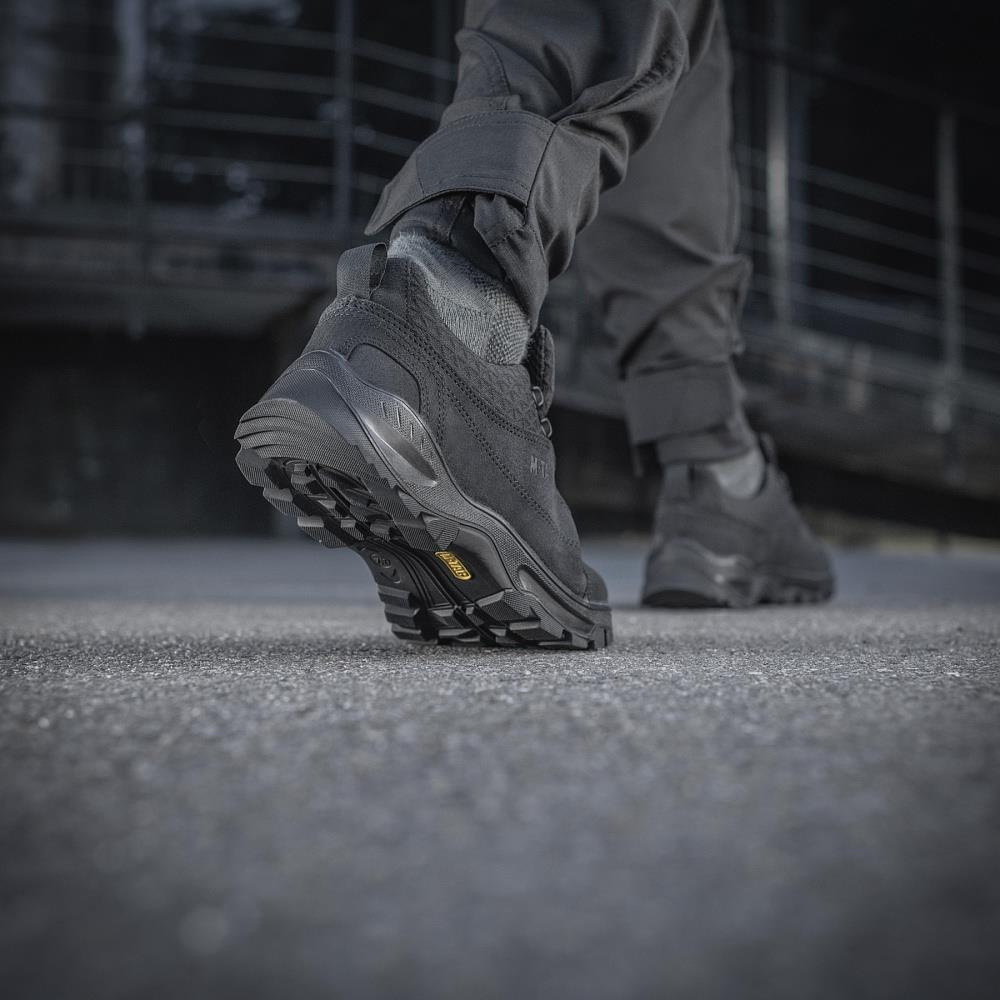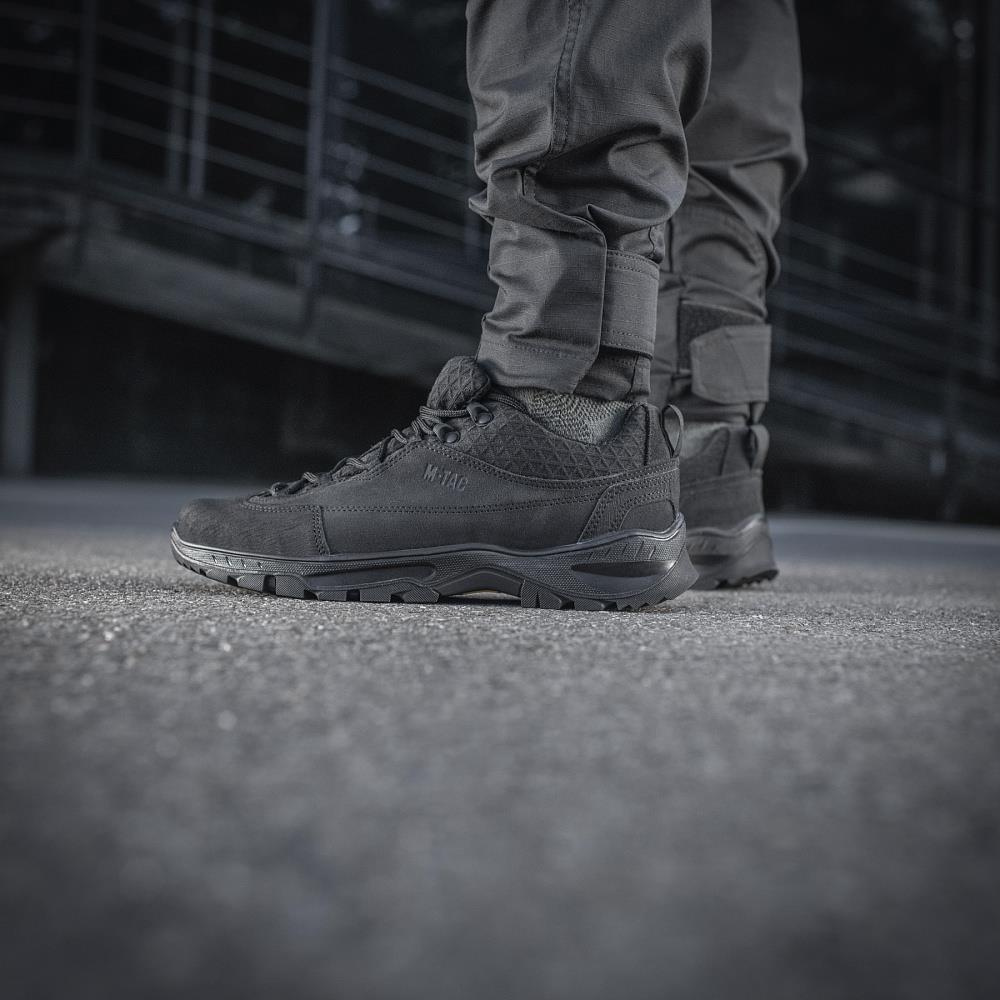 Taktische Schuhe für den täglichen Gebrauch von Zivilisten, Polizisten und Sicherheitskräften. Hergestellt von der ukrainischen Firma M-Tac. Die Schuhe sind für Patrouillen im Gelände und lange Wanderungen geeignet, das Obermaterial besteht aus dichtem Leder (Wildleder) und verfügt über 3D-Mesh-Einsätze, die Feuchtigkeit aus dem Schuhinneren ableiten lassen und so den Fuß vor übermäßigem Schwitzen schützen, ideales Schuhwerk für alle, die Survival und Outdoor lieben.