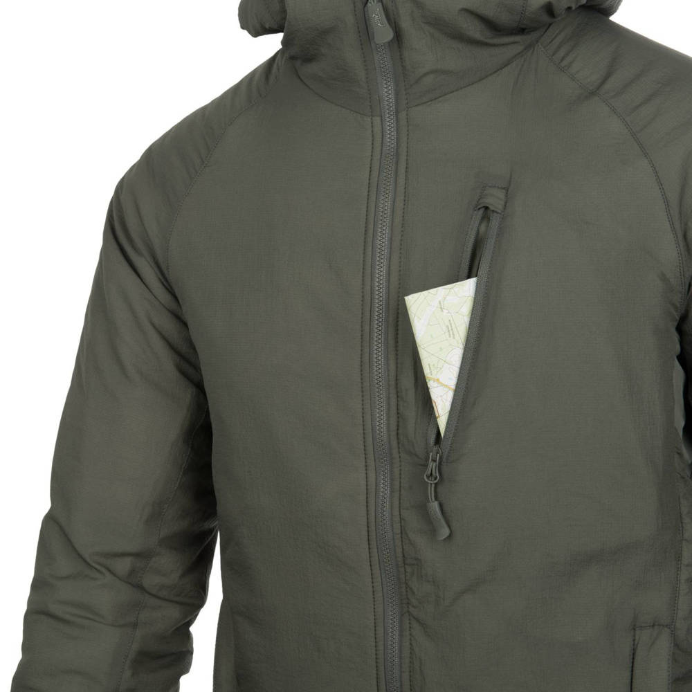 Helikon Wolfhound Hoodie ist eine leichte Jacke eines renommierten Herstellers von Militärbekleidung und -ausrüstung. Es wurde für den täglichen Gebrauch bei kaltem Wetter geschaffen, aber auch zum Tragen bei langen Wanderungen im Wald als Oberbekleidung oder wärmende Schicht unter Softshell oder Regenmantel.