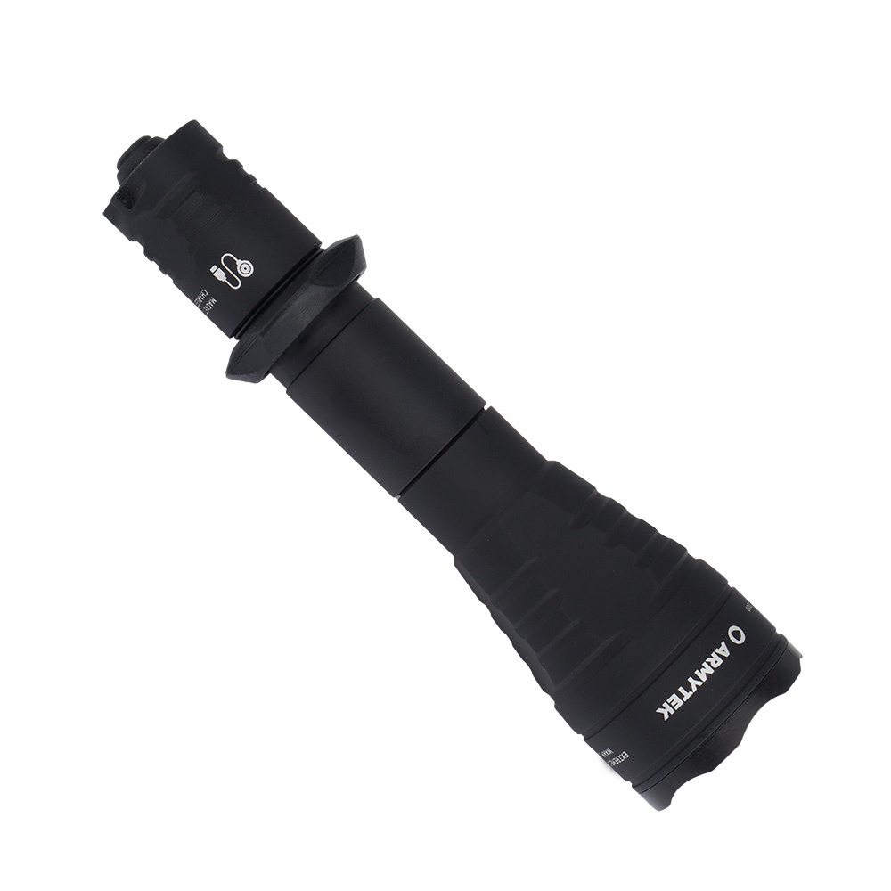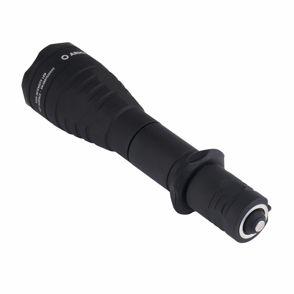 Taktische Taschenlampe Predator Pro, hergestellt von Armytek. Es hat viel Kraft, ist widerstandsfähig gegen Beschädigungen und Witterungseinflüsse, liegt auch in taktischen Handschuhen gut in der Hand. Leichte, extrem haltbare Konstruktion aus Luftfahrtaluminium ist resistent gegen Staub, Wasser und Stürze aus bis zu 25 Metern Höhe. Der Predator Pro ist eine ausgezeichnete Wahl für Schützen, Soldaten und uniformierte Dienste, bei denen es auf Langlebigkeit und Zuverlässigkeit ankommt.