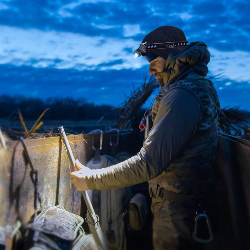Die Stirnlampe ist mit hochwertigen 4 LED-Emittern für weißes, neutrales und rotes Licht ausgestattet. Die Haupt-SST40-LED gibt konzentriertes Licht mit einer maximalen Leistung von 1200 Lumen ab. Die LED-Taschenlampe verfügt über eine kleinere XP-G2-Diode, die Licht mit einer maximalen Leistung von 350 Lumen erzeugt. Die Diode erzeugt diffuses Licht in neutraler Farbe, das die Farben der Umgebung nicht verfälscht. Die Fenix ​​HM60R verfügt über zwei zusätzliche Everlight 2835 LEDs, die rotes Licht aussenden, was besonders zum Lesen der Karte bei Nacht oder zur diskreten Bewegung nützlich ist.