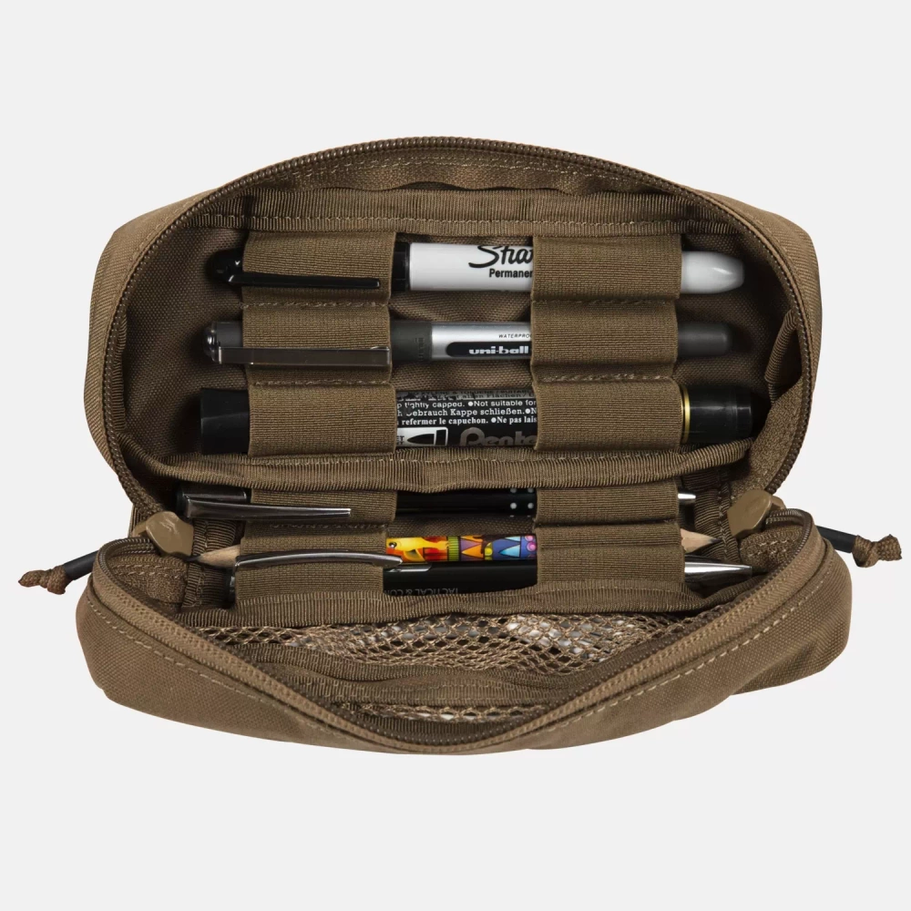 Federmäppchen-Organizer für die Organisation von Büromaterialien von Helikon. Es wurde aus Cordura-Nylon-Gewebe hergestellt, das sich durch hohe Verschleiß- und Abriebfestigkeit auszeichnet. Im Inneren hat der Benutzer sechs Fächer für taktische Stifte, Bleistifte und sogar Werkzeuge wie Schraubendreher, sowie eine einzelne Netztasche mit Reißverschluss.