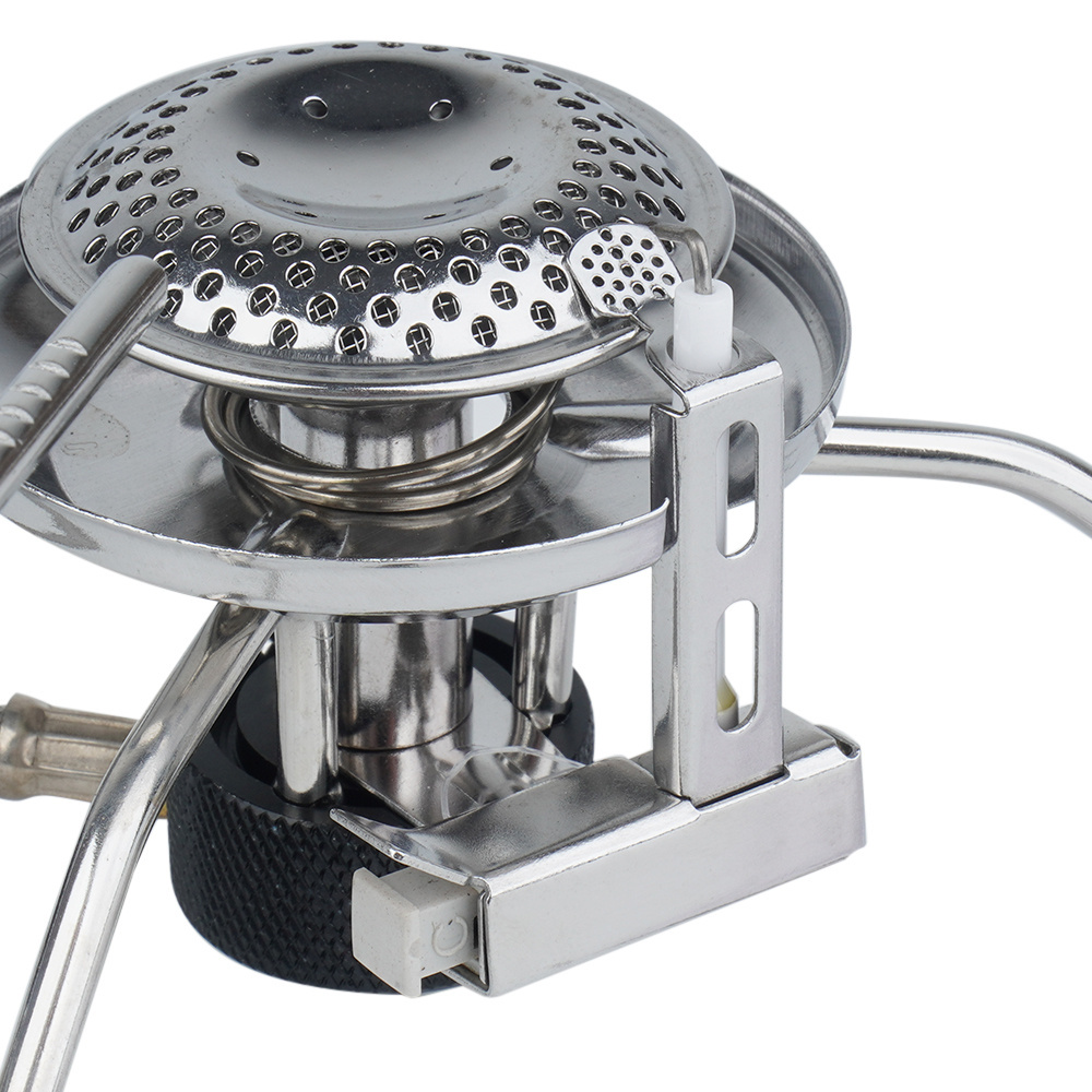 Ein einstellbares Ventil ermöglicht es, die Intensität der Flamme zu regulieren, und die Piezo-Zündung macht Streichhölzer überflüssig. Die Konstruktion aus rostfreiem und verchromtem Stahl sorgt für zusätzliche Festigkeit und Stabilität. Die einklappbaren Arme erleichtern den Transport, z. B. in einem Wanderrucksack.