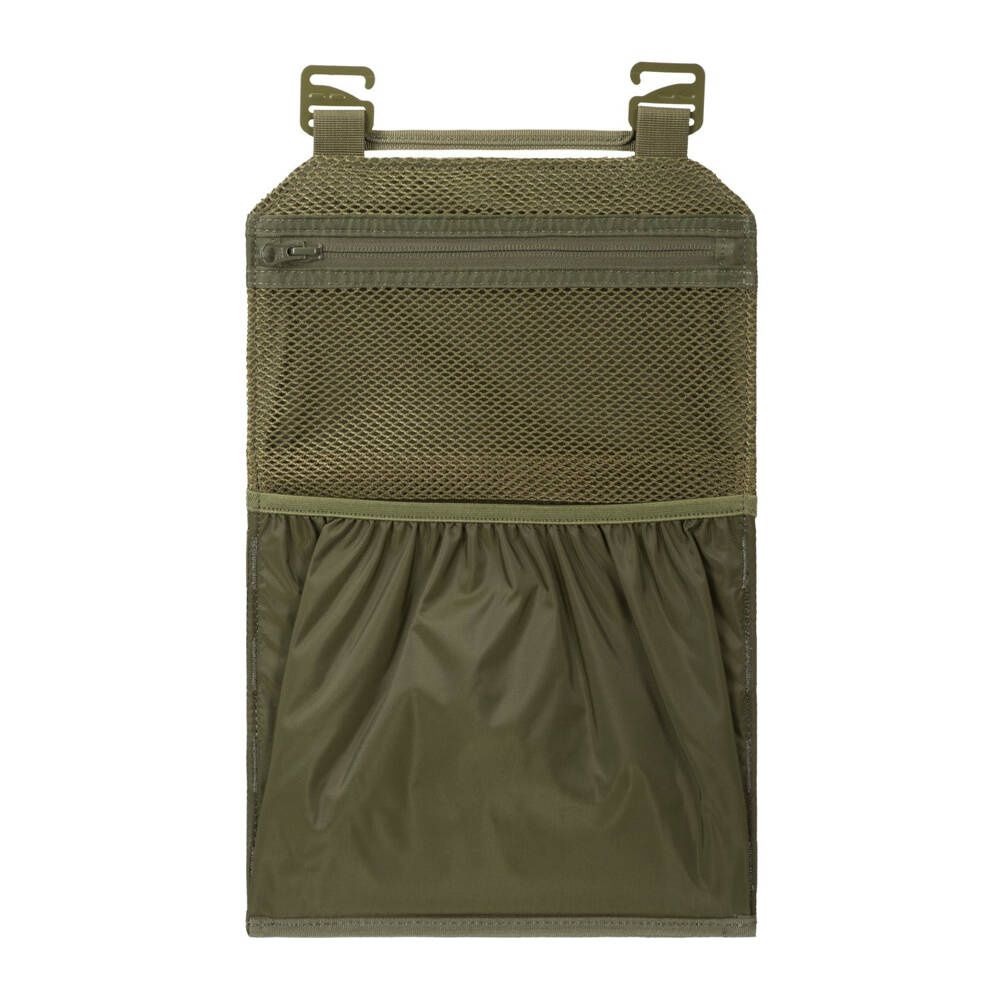 Großer Rucksack-Panel-Organizer der Marke Helikon, montiert mit G-Hook-Metallschnallen. Er ist aus Nylon gefertigt und zeichnet sich durch eine hohe mechanische Widerstandsfähigkeit aus. Er ist mit zwei Taschen ausgestattet - einer Haupttasche mit Reißverschluss und einer zusätzlichen Tasche mit elastischer Manschette. Der Klettverschluss am Organizer ist mit dem Versatile Insert System® kompatibel und ermöglicht die Erweiterung mit zusätzlichen Taschen.