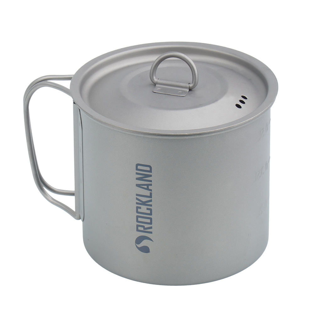 Ein Reisebecher mit Deckel aus strapazierfähigem Titan von Rockland. Der Campingbecher eignet sich perfekt zum Zelten im Wald oder auf Reisen, und das Fassungsvermögen von 600 ml ermöglicht es Ihnen, Kaffee zu brühen oder eine Mahlzeit für eine Person zuzubereiten.