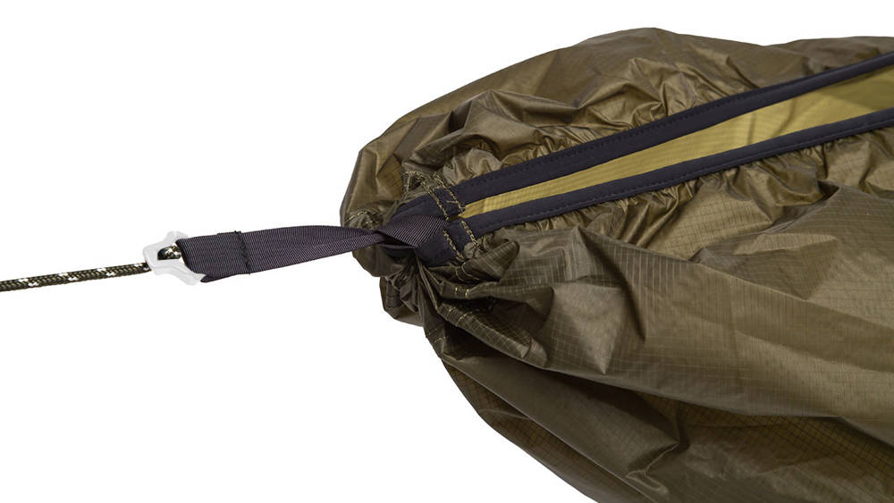 Die Mini-Hängematte wurde aus einem wasserdichten Ripstop-Gewebe hergestellt, dem gleichen Stoff, der auch zur Herstellung von Planen verwendet wird. In die Hängematte passen ein Rucksack mit einem Fassungsvermögen von 55 Litern, Schuhe und unsere Oberbekleidung, die wir morgens nach dem Aufwachen anziehen wollen. Die Größe des größten Rucksacks, den HUBA fassen kann, beträgt 70 Liter, und die vom Hersteller empfohlene maximale Belastung beträgt 15 kg.