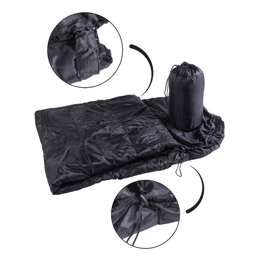 Geschlossen mit einem engen, doppelten Reißverschluss. Es hat eine weiche Kapuze mit Kordelzug, die sich gut als Kopfkissen eignet. Nachdem er zusammengerollt und in eine Transporttasche gepackt wurde, hat er eine geringe Größe, sodass er leicht in ein Rucksack passt.