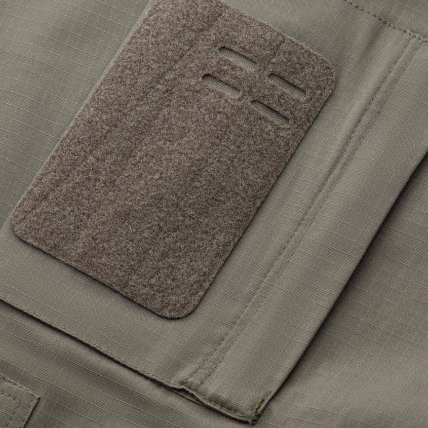 Unter den Achseln sind Ösen zur besseren Belüftung eingenäht, und entlang der Achseln sind Aufnäher angebracht, um die Bewegungsfreiheit in kugelsicheren Westen oder Plattenträger zu erhöhen. Außerdem wurde das Sweatshirt mit 6 Klettverschlüssen zum Anbringen von Aufnähern, Abzeichen oder Insignien ausgestattet. An den Ellbogen wurden Taschen und Protektoren mit niedrigem Profil angebracht, und der obere Teil des Sweatshirts ist mit einem Klettverschluss am Kragen ausgestattet.