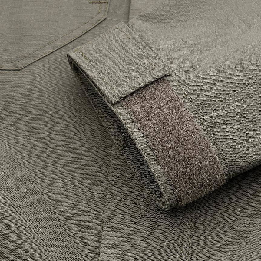 Das Sweatshirt ist aus modernem Policotton RipStop Material gefertigt . Dieses Material ist eine Kombination aus 63% Polyester, 35% Baumwolle und 2% Elastan. Dank dieser Mischung erhält das Sweatshirt eine hohe Reiß- und Abriebfestigkeit, ist leichter und trocknet schneller. Das Sweatshirt ist mit einem Kunststoff-Reißverschluss ausgestattet, der zusätzlich mit einem Klettverschluss-Patch abgedeckt ist. An den Ärmeln sind aufgesetzte Taschen mit Reißverschlüssen angebracht. Außerdem befinden sich auf der Brust 2 weitere geräumige Taschen, die mit Klettverschluss geschlossen werden. Der Hersteller der Reißverschlüsse ist die bekannte Firma YKK, während Velcro für alle Klettverschlüsse verantwortlich ist.
