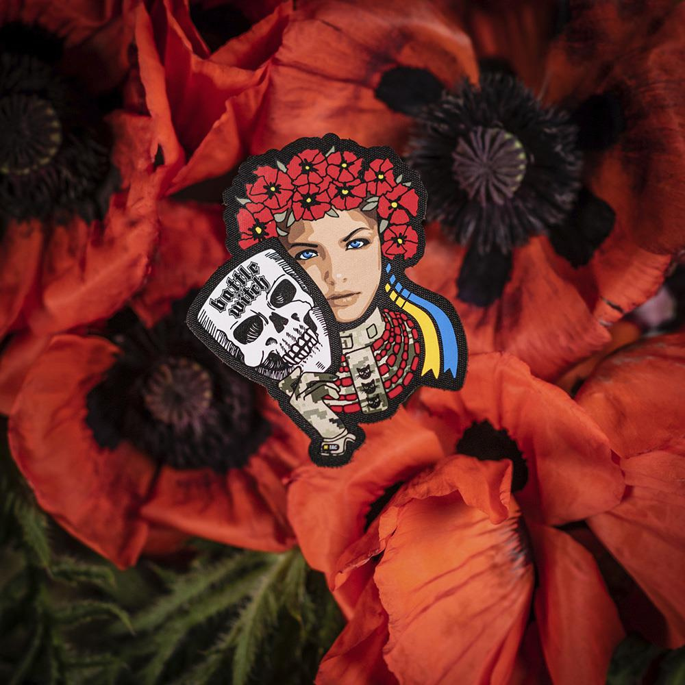 Das Moralabzeichen von M-Tac "Battle Witch", ist aus hochwertigem, abrieb- und beschädigungsfestem Oxford-Material gefertigt. Durch den Einsatz modernster Drucktechnologie konnten die Farben voll wiedergegeben und haltbar gemacht werden. Seine Abmessungen sind 100 x 80 mm, und mit Hilfe des eingebauten Klettverschlusses können wir es auf einer Mütze, einem Sweatshirt oder einem Rucksack anbringen. Der Aufnäher stellt ein sehr interessantes und originelles Motiv dar, nämlich die moderne Kampfhexe. Das abgebildete Bild zeigt uns mehrere Botschaften. Die eine ist ein schönes Mädchen mit einem Blumenkranz auf dem Kopf und der ukrainischen Flagge im Haar, das Schmuck trägt, der ukrainische Frauen symbolisiert, die für ihr Heimatland kämpfen. Die andere ist der Weg in den Tod, den sie ihren Feinden bereitet, symbolisiert durch eine Maske mit einem Totenkopf in ihrer Hand.