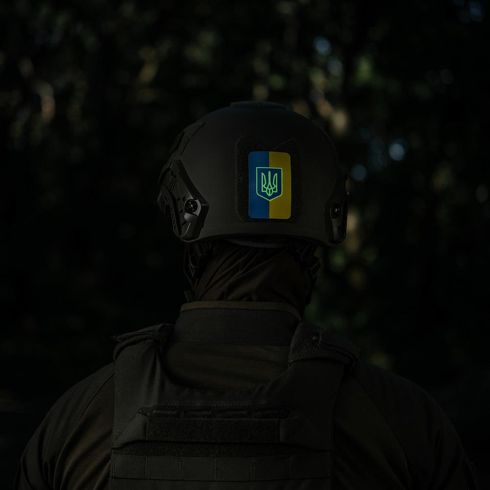 Flaggenaufnäher von M-Tac. Der 80 x 50 mm große Aufnäher zeigt die ukrainische Flagge mit Wappen in vertikaler Form. Mit Hilfe des eingebauten Klettverschlusses kann man ihn auf einer Baseballmütze, einem Sweatshirt oder einem Rucksack anbringen. Er dient dazu, die Nationalität des Trägers zu identifizieren. Er wurde mit einer neuen Drucktechnologie hergestellt, die es uns ermöglicht, die Farben vollständig wiederzugeben. Der Aufnäher leuchtet im Dunkeln.