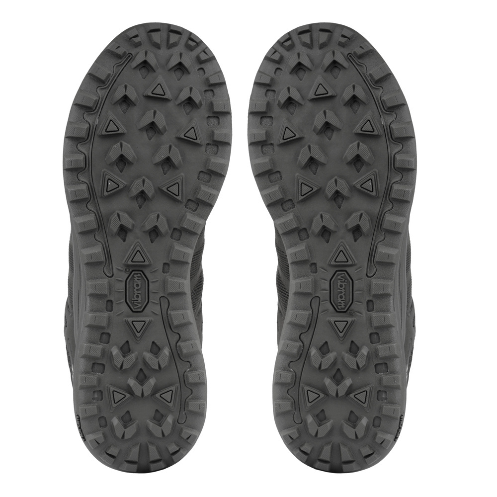 Die Schuhe haben eine Vibram-Sohle aus abriebfestem Gummi und mit einem ausgeprägten Profil, das ihnen einen guten Grip verleiht. Ergänzt wird es durch EVA-Schaumstoffeinsätze, die die Stabilität verbessern, und ein stoß- und vibrationsdämpfendes Polster unter der Ferse.